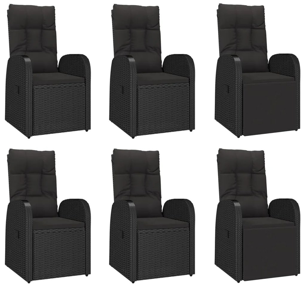 vidaXL Σετ Τραπεζαρίας Κήπου 7 Τεμ. Μαύρο Συνθετικό Ρατάν με Μαξιλάρια