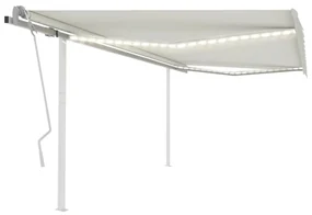 Δημιουργήστε ένα υπέροχο και εντυπωσιακό μέρος στους εξωτερικούς σας χώρους με αυτή τη συρόμενη τέντα! Χάρις στον σκελετό αλουμινίου με ηλεκτροστατική βαφή πούδρας και αντίσταση στη σκουριά, αυτή η τέντα εξωτερικού χώρου είναι ελαφριά και στιβαρή. Το ύφασμα της χειροκίνητης συρόμενης τέντας αποτελείται από υψηλής πυκνότητας πολυεστέρα με επικάλυψη πολυουρεθάνης, με αποτέλεσμα να αντιστέκεται στο νερό και την υπεριώδη ακτινοβολία. Ο ισχυρός ατσάλινος στύλος την καθιστά σταθερή και στιβαρή. Η γωνία και το ύψος μπορούν να ρυθμιστούν σύμφωνα με τις ανάγκες σας. Μπορείτε, να ανοίγετε και να μαζεύετε εύκολα την τέντα μέσω του περιλαμβανόμενου τηλεχειριστηρίου, ενώ η μακριά μανιβέλα καθιστά ομαλό τον χειρισμό της. Ο αισθητήρας ανέμου θα κλείνει αυτόματα την τέντα τις ημέρες με δυνατό άνεμο και τα φωτιστικά LED θα παρέχουν ενεργειακά αποδοτικό φωτισμό κατά τη διάρκεια της νύχτας. Χρώμα: Κρεμ Χρώμα πλαισίου: Λευκό Υλικό: Αλουμίνιο με ηλεκτροστατική βαφή πούδρας, σίδηρος, ύφασμα (100% πολυεστέρας) με επίστρωση πολυουρεθάνης Συνολικές διαστάσεις: 450 x 350 εκ. (Μ x Π) Διαστάσεις στύλου: 450 x 245 εκ. (Π x Υ) Παροχή τάσης: 230V~ , 0,95A; 50/60Hz Ισχύς: 226 W Ροπή: 40 Nm Ταχύτητα: 13 Στροφές ανά λεπτό (RPM) Τάση LED: 12 V Απαιτείται συναρμολόγηση: Ναι