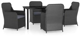 vidaXL Σετ Τραπεζαρίας Κήπου 5 Τεμαχίων Μαύρο με Μαξιλάρια