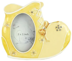Κορνίζα παιδική πολυεστερική με σμάλτο σε κίτρινη - εκρού απόχρωση, στρας τύπου swarovski και ανάγλυφα λουλούδια - φιογκάκι από την Royal Art - Διάσταση Φωτογραφίας: 13x10εκ.