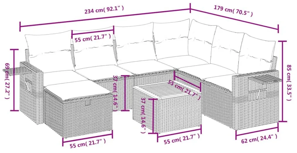 Σαλόνι Κήπου Σετ 8 τεμ. Μπεζ Συνθετικό Ρατάν με Μαξιλάρια