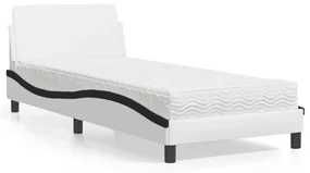 Κρεβάτι με Στρώμα Λευκό και Μαύρο 90 x 200 εκ. Συνθετικό Δέρμα - Λευκό