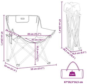 Καρέκλες Κάμπινγκ με Τσέπες Πτυσσόμενες 2 Τεμ. Μαύρες