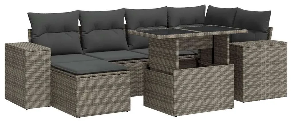 Σετ Σαλονιού Κήπου 7 τεμ. Γκρι Συνθετικό Ρατάν με Μαξιλάρια - Γκρι