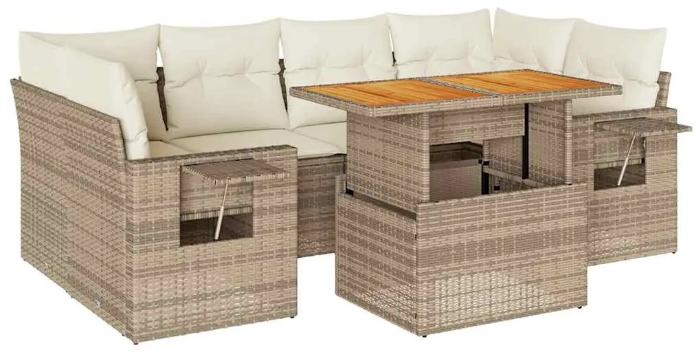 vidaXL Σαλόνι Κήπου Σετ 7 τεμ. Μπεζ Συνθετικό Ρατάν με Μαξιλάρια