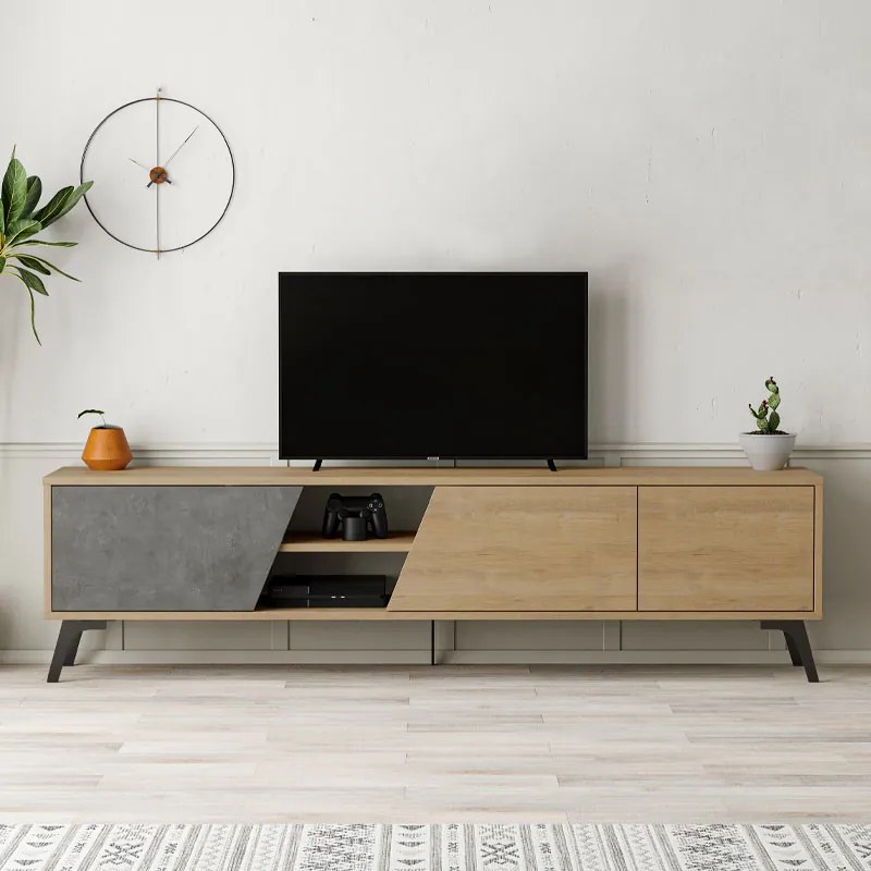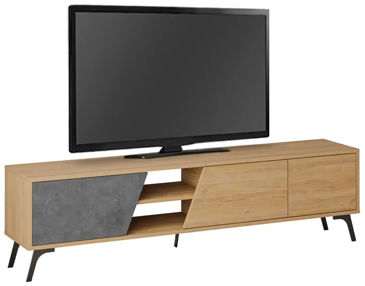 Έπιπλο τηλεόρασης Fiona Megapap από μελαμίνη χρώμα φυσικό οξιάς - γκρι ρετρό 180x35,6x48εκ.
