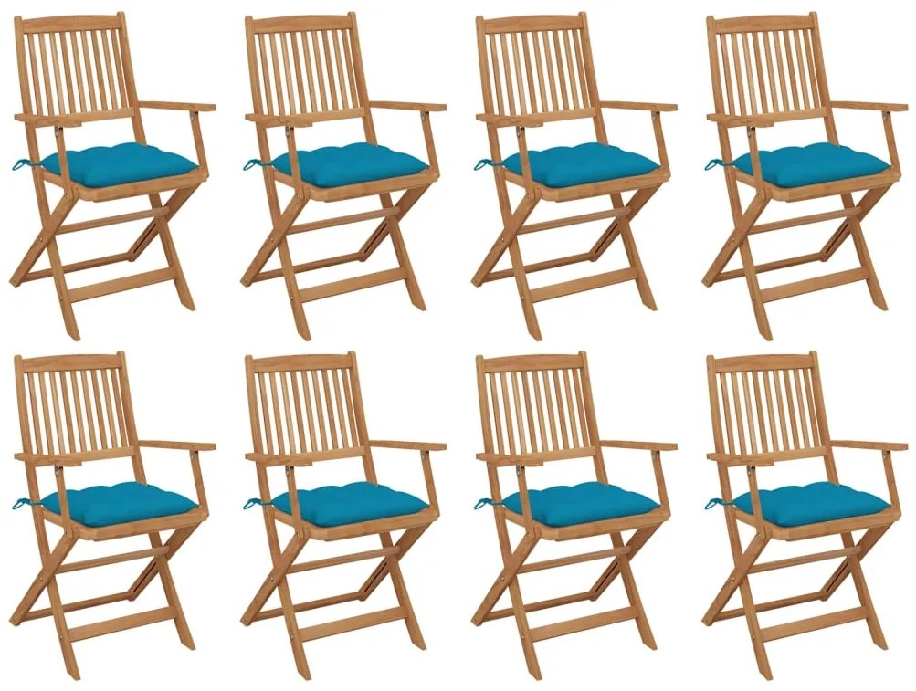 Το μοντέρνο σετ ξύλινων καρεκλών τραπεζαρίας μας, θα προσθέσει μια αίσθηση φυσικού στιλ στον κήπο, τη βεράντα ή το αίθριό σας. Αυτό το σετ από πτυσσόμενες καρέκλες θα αποτελέσει μια εξαιρετική επιλογή για την ώρα του φαγητού. Αυτές οι καρέκλες τραπεζαρίας είναι κατασκευασμένες από υψηλής ποιότητας ξύλο ακακίας, ένα τροπικό σκληρό ξύλο, το οποίο παρουσιάζει αντίσταση στις καιρικές συνθήκες και είναι ανθεκτικό για μακροχρόνια χρήση. Η επιφάνεια με φινίρισμα λαδιού, καθαρίζεται εύκολα με ένα νωπό πανί. Οι καρέκλες μπορούν να αναδιπλωθούν για εξοικονόμηση χώρου όταν δε χρησιμοποιούνται. Επιπλέον, τα περιλαμβανόμενα μαξιλάρια παρέχουν ενισχυμένη άνεση. Κάθε μαξιλάρι διαθέτει δύο σετ από σχοινιά για να το στερεώνετε σταθερά στην καρέκλα. Σημείωση: Προκειμένου να παραταθεί η διάρκεια ζωής των επίπλων εξωτερικού χώρου, σας συνιστούμε να τα καθαρίζετε τακτικά και να μην τα αφήνετε σε εξωτερικούς χώρους ασκόπως χωρίς προστασία. Καθαρισμός: Χρησιμοποιήστε ένα ήπιο διάλυμα σαπουνιού Αποθήκευση: Εάν είναι δυνατόν, αποθηκεύστε σε δροσερό, ξηρό μέρος σε εσωτερικούς χώρους. Εάν το προϊόν είναι αποθηκευμένο σε εξωτερικούς χώρους, προστατέψτε το με αδιάβροχο κάλυμμα. Σκουπίστε και στεγνώστε το περισσευούμενο νερό ή χιόνι από επίπεδες επιφάνειες έπειτα από βροχή ή χιονόπτωση. Επιτρέψτε επαρκή κυκλοφορία αέρα για την αποφυγή των ζημιών που σχετίζονται με την υγρασία. Χρώμα μαξιλαριού: Γαλάζιο Υλικό καρέκλας: Μασίφ ξύλο ακακίας (με φινίρισμα λαδιού) Υλικό μαξιλαριού: Ύφασμα (100% πολυεστέρας) Διαστάσεις καρέκλας (σε έκταση): 54 x 57 x 91 εκ. (Π x Β x Υ) Διαστάσεις καρέκλας (σε αναδίπλωση): 54 x 15 x 109 εκ. (Μ x Π x Υ) Διαστάσεις μαξιλαριού: 40 x 40 x 7 εκ. (Μ x Π x Πάχος) Πλάτος καθίσματος: 44 εκ. Βάθος καθίσματος: 39 εκ. Ύψος καθίσματος από το έδαφος: 44 εκ. Ύψος μπράτσων από το έδαφος: 64 εκ. Με 2 σετ σχοινιών Απαιτείται συναρμολόγηση: Ναι Στην παράδοση περιλαμβάνονται: 8 x Καρέκλες 8 x Μαξιλάρια Μέγιστο 110 κ. ανά κάθισμα.